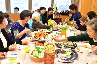 華やかなパーティー料理とゲームなどの催しを楽しみます。